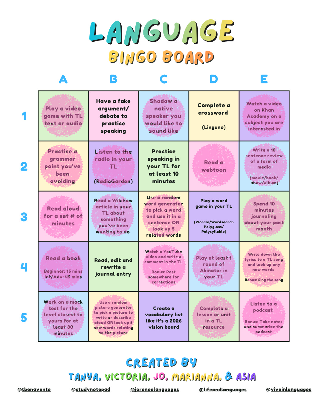 Happy Spring, and welcome to the week 3 recap of the Language Bingo Board Challenge! 🌸🌼